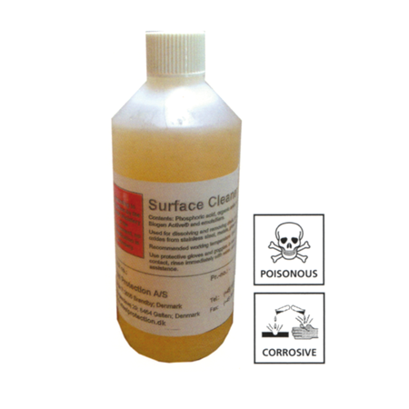 The kit comprises a viscous deep cleaner that removes contamination such as oxides/rust/’tea-stains’ plus a passivating agent that will also remove contamination loosened by the deep cleaner. An application sponge is also included.
